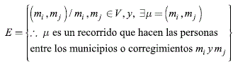 Para simbolizar los municipios con letras en la expresión anterior, se puede escribir V de la siguiente manera:
