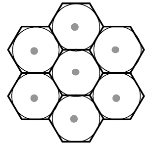 Las distintas producciones tienen diferentes rangos de mercado, entendido como la distancia máxima que los consumidores están dispuestos a recorrer para adquirir el bien o servicio. Si el umbral es mayor al rango de mercado, el bien o servicio no se puede producir. Ahora bien, si cada empresa se ubica en el espacio isotrópico, con su respectivo umbral y rango de mercado, la configuración de la estructura espacial de las áreas de mercado circulares se ve como en la Figura 1. En esta figura, sin embargo, hay espacios intersticiales entre las áreas circulares de mercado, que no son atendidas. Christaller y otros analistas TLC solucionaron este problema usando áreas de mercado de forma hexagonal (Christaller, 1966), como se muestra también en la Figura 1.