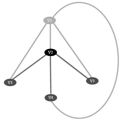 Así, por ejemplo, los grados de los vértices del grafo representado en la Figura 2 son: grG(v1) = 1; grG(v2) = 3; grG(v3) = 2; grG(v4) = 2.