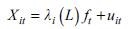 is the vector of the dynamic loadings of order s; ft is the vector of the q unobserved factors; u.t are the idiosyncratic innovations; and t the analysed period t = 1,...,T.