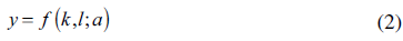 Con el objetivo de estimar la influencia de la apertura comercial en el mercado de trabajo, se emplea una ecuación de la demanda de trabajo a partir de la minimización de costos para las empresas. El modelo de referencia está basado en Bruno et al. (2004) y Yasmin y Khan (2005). Para el mismo fin, se emplea una ecuación sencilla de la demanda de trabajo. Se parte de una función de producción a partir de la minimización de costos para las empresas donde se consideran dos insumos productivos: trabajo (l) y capital (k), sus pagos corresponden a las remuneraciones (w) y a la tasa de interés (r), respectivamente. Al suponer que el mercado de factores productivos es perfectamente competitivo, la función de producción (y) de las empresas estaría dada por: