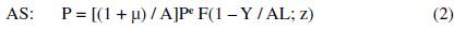 The previous analysis allows us to identify the aggregate supply curve and then arrive at the full AD-AS model. The aggregate supply, obtained from the equality of the two wage curves and some additional substitutions, is defined as follows: