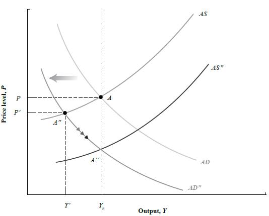a It should be stressed that the original chart on p.166 shows the reduction of the budget deficit by the Government. However, the effects of a fall in investments would result in the same mechanism of falling DA and adjustment through an expansion of the AS. Source: Blanchard (2010).