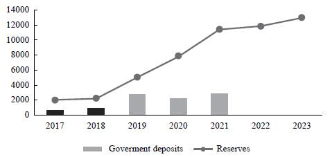 It is also possible, however, that the accumulation of reserves is intended to mitigate the effects of a possible banking crisis, given that the recession induced by the EFA will be difficult for some financial institutions.4 If this is true, the State-Banking relationship indicated at the beginning of this section could be more fully understood.