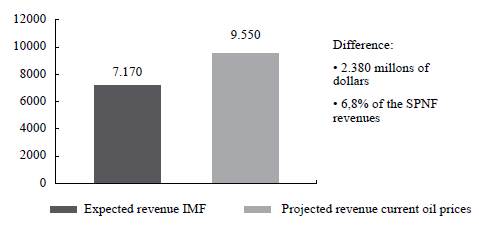 If this case is analysed using the average price between January and June 2019 of USD 57.05 dollars per barrel, it is likely that the non-financial public sector oil revenues will be 6.8% higher than estimated - some 2,380 million dollars: a figure that almost doubles the annual IMF disbursement. Likewise, the external deficit estimated by the Fund will fall. According to the EFA, oil exports will fall by 8.7%, which is equivalent to 765 million dollars, despite the fact that up to June this year exports have grown by 3.7% due to a 9% increase in the amount of oil sold (BCE, 2019a).