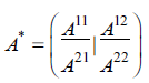 Las submatrices A11 y A22 son cuadradas de orden m x m y (n-m) x (n-m) si A* es de orden (n x n) y existen m manufacturas en la economía, las submatrices A12 y A21 son de orden m x n y n x m, respectivamente, y corresponden a (1) los coeficientes de insumos empleados por las ramas no manufactureras, producidos por las manufacturas A12 y (2) los coeficientes de insumos no manufactureros empleados por las manufacturas A21. La solución del modelo de Leontief requiere del cálculo de la siguiente matriz: