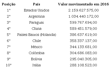 Sendo assim, pode-se observar, conforme a Tabela 7 abaixo, quais foram os 10 principais países compradores de produtos das micro, pequenas e médias empresas brasileiras, assim como o valor movimentado por cada um.