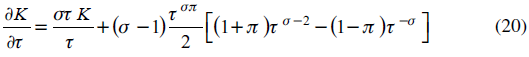 De esta ecuación fundamental, entonces, se analiza el efecto de los costos de transporte sobre el desplazamiento o no de la producción entre los dos emplazamientos considerados. Si los costos de transporte son cero, para lo cual τ = 1, la variable K = 1, con lo cual la ubicación es irrelevante. De acuerdo con Krugman (1999), valores pequeños de r hacen que la relación de ventas sea mayor a 1 y, por tanto, los altos costos de transporte estimularían el desplazamiento de la producción (creación de una nueva planta), del Este al Oeste. Sin embargo, bajos costos de transporte harían sostenible la producción en el Este, por lo que se mantendría un modelo centro-periferia de la actividad económica (ecuación 20).