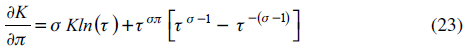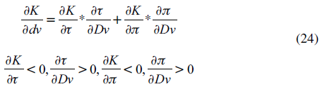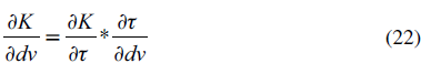 Si se examina la reacción de la relación entre las ventas potenciales con respecto a t, deben considerarse los factores que determinan a los costos de transporte, contemplados en la ecuación (3) de nuestro planteamiento. En tal sentido, el efecto de las densidades viales o infraestructural vial, sobre la relación de ventas K será el resultado de la ecuación (22).
