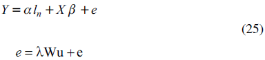 Con el propósito de determinar esto en el análisis de convergencia condicional realizado fue estimada la siguiente ecuación de error espacial (ecuación 25).