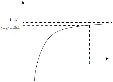 Sin embargo, en el largo plazo, la condición de maximización de los beneficios igualará al costo medio, por lo que los beneficios cero implicará la ecuación (10). A este respecto, la relación entre el costo medio y el costo marginal será simplemente la relación