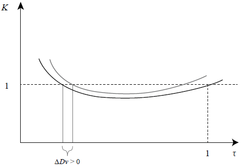 Si K > 1 indicará que las ventas del "oeste", ajustadas por los costos de transporte, superan las ventas del "este" con lo cual, la firma encontrará incentivos para desplazarse. Si K < 1, el modelo centro periferia será sostenible.
