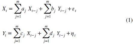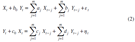Sean Xt , Yt dos series de tiempo estacionarias con media cero. En este caso, el modelo causal simple es el que muestra la ecuación (1).