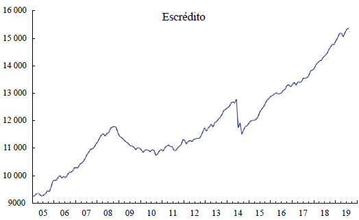 Esta salida de recursos continuó incluso después de lo peor de la crisis global y repercutió en la reducción del crédito (Figura 14), lo cual puede asociarse con la persistente contracción económica, debido a la relación entre el crédito y el Esimae (Figura 2).
