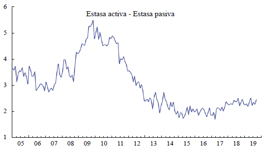 Ibarra (2016) reveló que, en México, el diferencial entre las tasas activa y pasiva era un indicador de la oferta de crédito, de manera que el aumento de este diferencial denota una situación de reducción de la oferta de crédito, lo que, a su vez, amplifica el impacto negativo del aumento de la tasa de interés sobre la economía real.