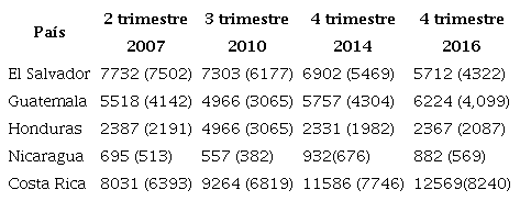 De las cifras anteriores se desprende que, entre el tercer trimestre de 2007 y el cuarto trimestre de 2016, las agencias de bancos extranjeros que operan en El Salvador habían remitido a sus casas matrices un total de 3180 millones de USD.