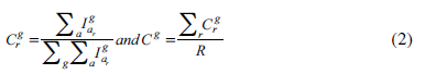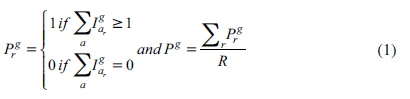 Participation enumerates the number of publications with at least one author of a given gender. Denoting the bibliographic reference as r (r = 1,.. .,R), author as a (a = i,.. .,A), gender as g (g = 1,2), the condition of being an author as I (I = 1 if the condition holds and 0 if it does not), the participation of gender g in the publication Prg and the participation of gender in the database Pg are: