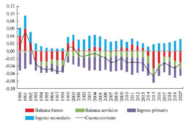 Como se dijo en la segunda sección, en el caso colombiano se evidencia que la economía contaba, en 2020, con amplio desequilibrio externo y mayor exposición al contagio financiero internacional, lo que se traduce en una importante vulnerabilidad ante choques externos. Estas condiciones están asociadas a la crisis de 2008 y las políticas de flexibilización cuantitativa, aplicadas en el mundo desarrollado.