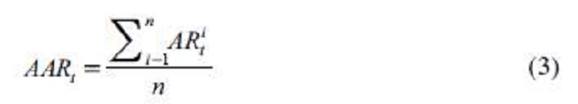 Donde ARit , es el retorno anormal promedio, estimado en el periodo t; ARit, es el retorno anormal de la acción i estimada en el periodo t; n, es el número de observaciones en la submuestra de observaciones, que mantienen la misma hipótesis de signo del RA.
