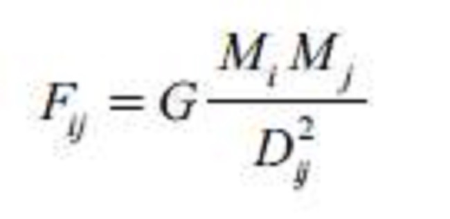Donde MiMj. son las masas, Dij. es la distancia entre los dos objetos, y G es una constante.