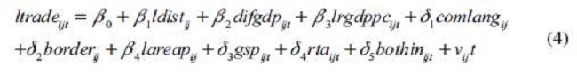 vijt = αij+ uijt es la fórmula del término error, compuesto por αij que son los factores no observados invariantes en el tiempo y el efecto individual, por ejemplo, las capacidades innatas de los países o sus factores históricos e institucionales. Para controlar estos factores inobservados se usan efectos fijos sujetos al par de países.