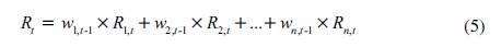 Wj,t-1 es el peso de la acción j en el mes t - 1, calculada como la capitalización bursátil de la acción j en el mes t - 1, sobre la capitalización bursátil total del portafolio en el mes t - 1.