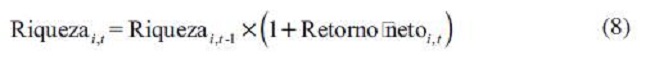 La riqueza del accionista promedio se reajusta con base en el retorno que obtiene del portafolio de cada mes como muestra la ecuación (8). Esta ecuación se replicó para los cuatro mercados accionarios.