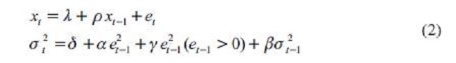 We also estimate Threshold Autoregressive Conditional Heteroskedasticity (TARCH)-type models (2) to analyse the volatility of BTC returns. The specification of the model allows us to estimate persistence as well as asymmetric effects of shocks in the volatility equation.