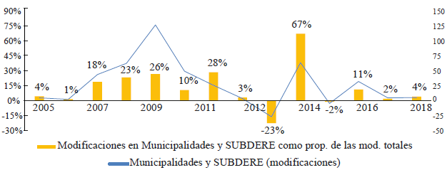 El 2012, no se observan cambios importantes y, en 2013, disminuyen los montos durante el año. No obstante, en 2014, se registra un aumento importante (67 % del total de las modificaciones presupuestarias del misterio) y, desde 2015, las transformaciones han sido menores.