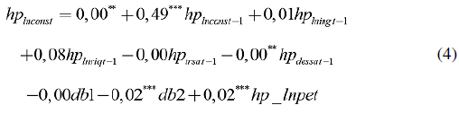 A continuación, se observa un ejemplo para la ecuación de largo plazo, asociada al cuarto modelo ARDL: