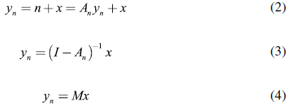 M es una matriz de orden (NxN), que contiene a los multiplicadores contables, el elemento Mij captura el aumento en el ingreso de la cuenta i cuando la cuenta j recibe una inyección unitaria de ingreso proveniente de una de las cuentas exógenas. Con base en esta matriz de multiplicadores, se calculan dos tipos de efecto: absorción y difusión. La magnitud de los efectos de difusión y absorción de cada cuenta depende de la trayectoria y la intensidad de sus relaciones de ingreso-gasto, es decir, de su papel en el flujo circular de la renta (Aguayo et al., 2009).
