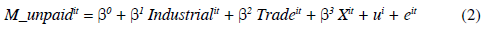 Los parámetros β1 y β2 podrían interpretarse como una medida de trato desigual en las ocupaciones. Si el signo de ß2 estimado es negativo, podría interpretarse que la pertenencia de la firma al sector industrial contribuye a que la cantidad de mujeres empleadas sin pago sea menor, en comparación con el sector de servicios, pues hay una discriminación a favor del segundo. Y, si es positivo, denota la situación inversa. El coeficiente ß2 mide la diferencia entre la contribución del sector comercial y el de servicios. Por ello, un signo positivo supone que habría una diferencia en las ocupaciones a favor de las actividades comerciales.