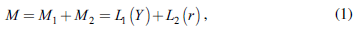 where M1 contains all money, demand derived from the transaction- and precautionary-motives. The functional form of this first type of money demand, L1(Y ) = Y / V, depends on the economy's total output (Y) and total volume of transactions (V). M2 is the money demand which is related to the speculative-motive and is given by the function L2(r) = f (re ),where re is the expected interest rate.