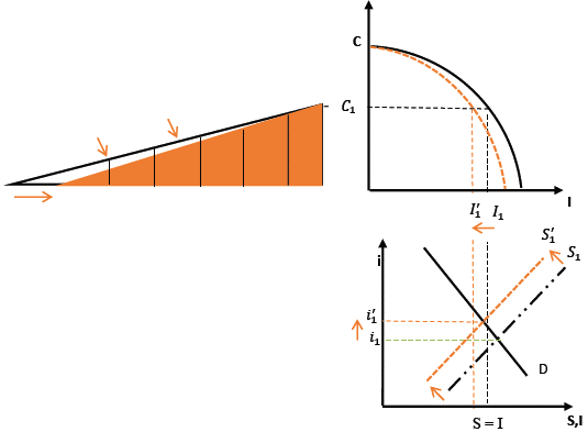 The combination of these three effects will lead to a new and more capital-intensive productive structure such as the one shown in figure 5.