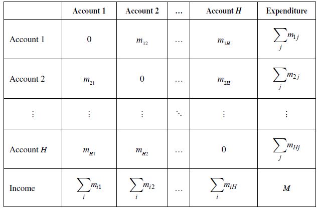 For this reason, this approach conceives market societies as a system of individual monetary accounts, interrelated by the monetary payments that occur between them, and which are expressed analytically through the following matrix (Table 1).