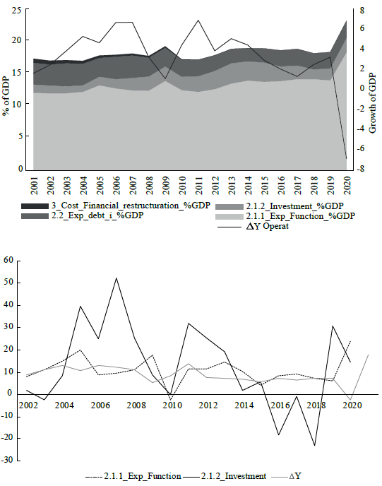 For the case of Colombia this has not been the path, even if its public multiplier is higher compared to others in the region, and during recession has even higher values (González, 2020; Restrepo, 2020; Ángel et al., 2020). As already described, public expenditure in Colombia is low and is constrained by fiscal regulation, by the international prices of commodities fluctuations and by legal and political rigidities. The consequence is that the government does not engage in active counter-cyclical policies, and that public debt is not a source of income available for the government in order to promote higher levels of aggregate demand (Rodríguez, 2021; Ocampo, 2021).