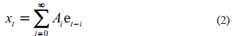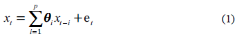 Para la ecuación (2), A. = es una matriz de N x N, que se describe por Ai. = θ1Ai-l+ θ2, Ai-2+...+ θpAp-N .„ donde i = 1, 2, 3.....N; y p es el número de rezagos.