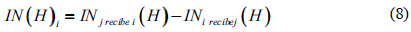La dirección del impacto desde la variable j hacia la variable i, se determina por la siguiente ecuación donde se muestra el índice de la variable j: