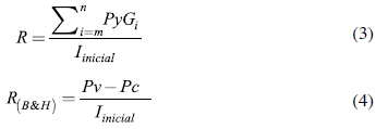 En el caso de las reglas técnicas, el porcentaje de rentabilidad acumulada para el periodo considera la relación entre la sumatoria de los resultados operativos y el valor inicial de la inversión, como se muestra en la ecuación (3). Por otra parte, en la estrategia pasiva dicha relación se determina por la diferencia entre el precio de venta al final del periodo analizado menos el precio de compra al inicio de la inversión, diferencia dividida entre el valor invertido al inicio del periodo, según lo expresado en la ecuación (4).