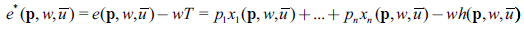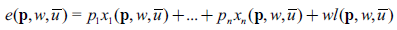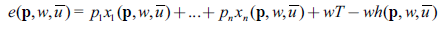 Following Angrist (2017), the excess expenditure function, that is, the non-wage income that a person requires to get to the level of utility U with a given vector of prices (p, w), can be written as: