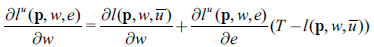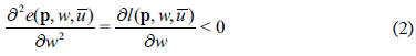 The expenditure function, that is, the minimum expenditure required to reach a level of utility U with a given vector of prices (p,w), can be written as: