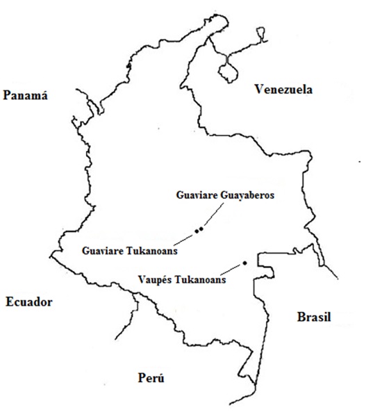 The Vaupés and Guaviare regions in southeastern Colombia are inhabited by several indigenous groups belonging to different linguistic families. These groups have an extensive history of demographic expansions, wars, alliances, migrations and trades. With the arrival of European populations into the region, a new chapter was opened, leading to the disruption of some cultural and social dynamics of the existing indigenous groups. To a large extent, it can be said that such disruptions caused a major reduction on the size of the indigenous populations, displacements from original territories, or even a total extinction of some groups1.