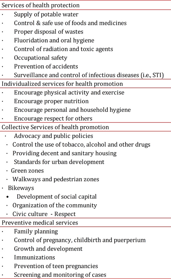 Palabras clave: Servicios de salud, servicios médicos, servicios de protección de la salud, servicios de promoción de la salud, servicios de medicina preventiva.
