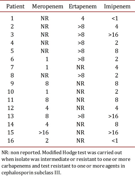 Palabras clave: Klebsiella pneumoniae, carbapenems, estudio de casos y controles, factores de riesgo, quinolonas.