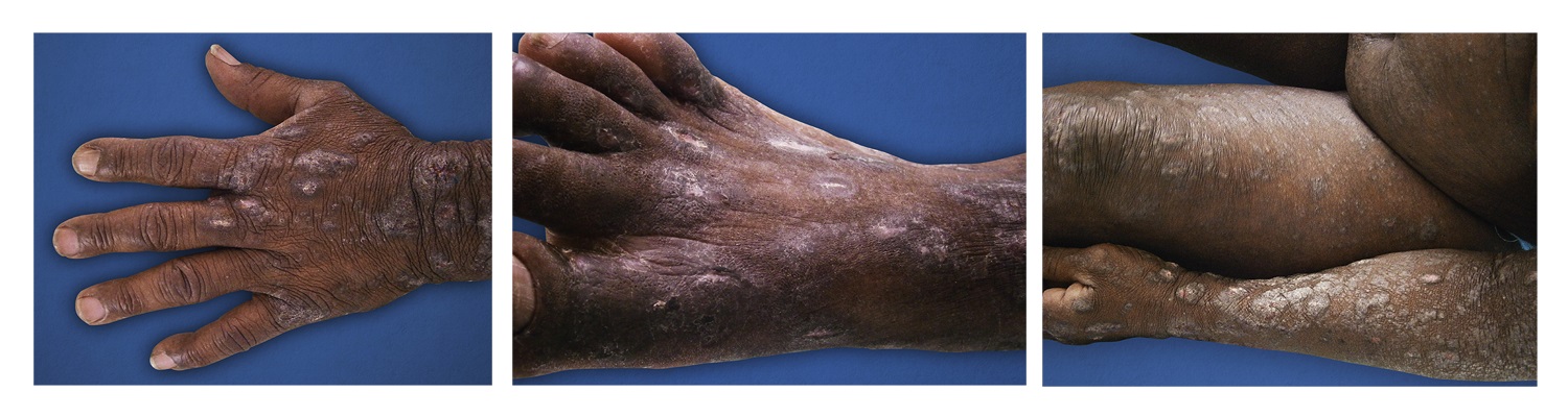 This case report describes a 52-year-old woman from the coast of Nariño (Colombia). The patient presented with a 10-year history of progressive development of intensely pruritic papules, plaques and nodules. Symptoms started on the neck and thereafter slowly became widespread. No relevant associated family history was reported.