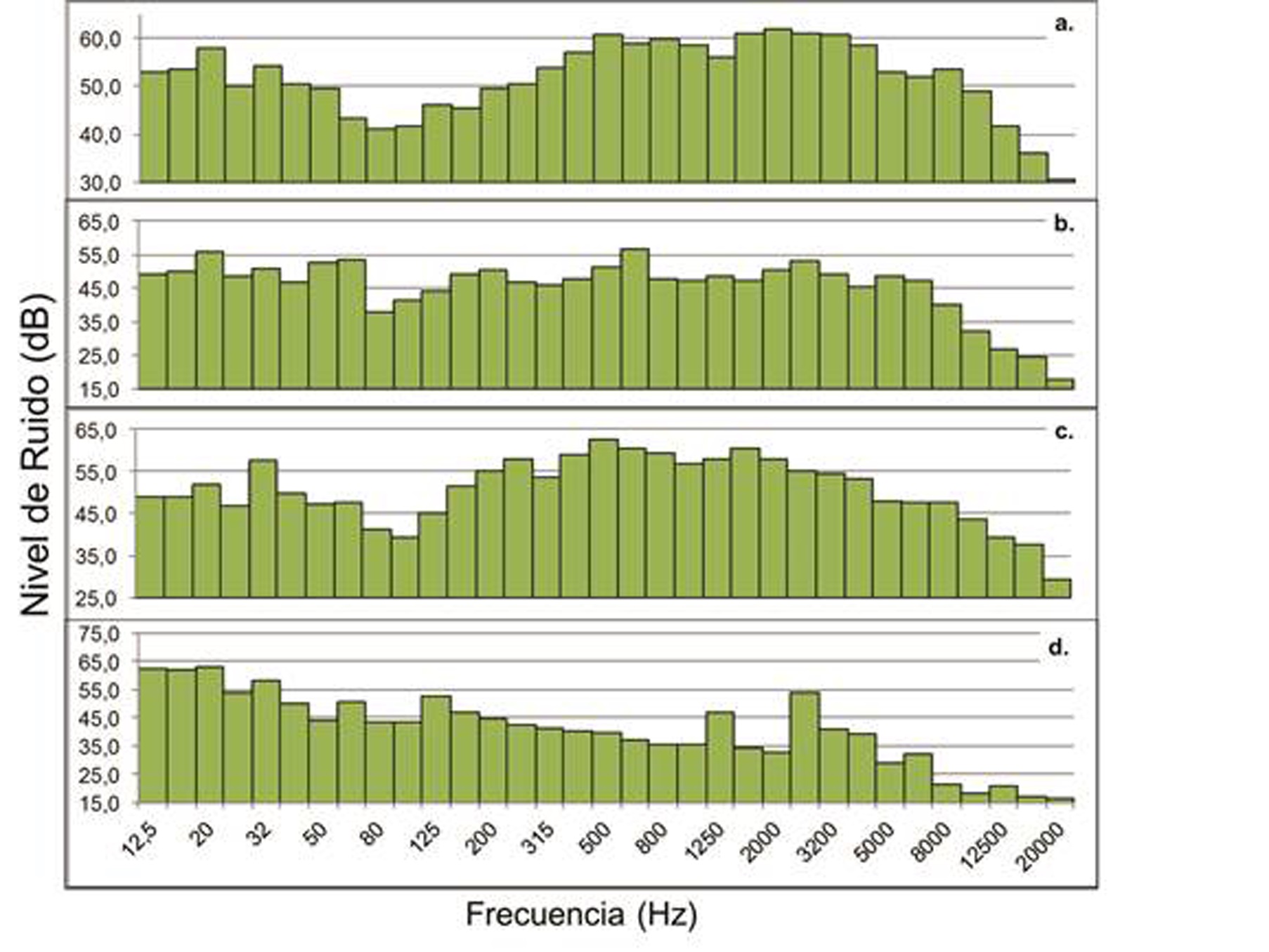 Conclusión: Los valores presentados superan los estándares sugerido por diversas organizaciones. Las fuentes identificadas y medidas registraron mayor aporte en las frecuencias bajas.