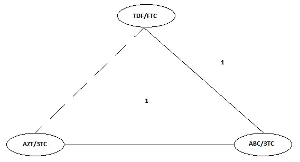 There are no comparisons that include these three schedules, so the aim of this research was to compare the efficacy and safety of the combination of ZDV/3TC vs. ABC/3TC vs. TDF/FTC as components of highly active antiretroviral therapy (HAART) in patients more than 18 years old with HIV who are initiating treatment.