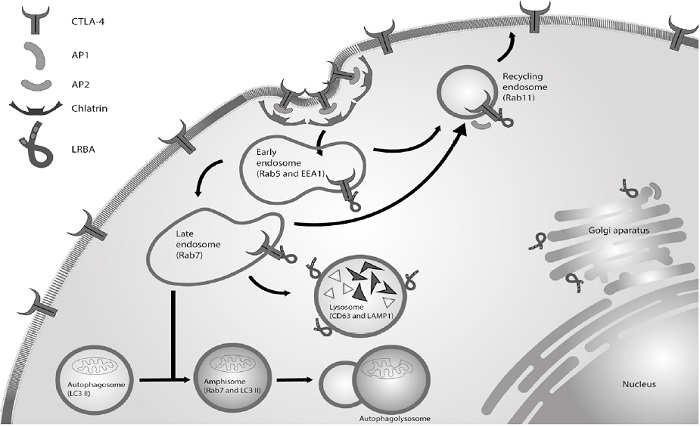 Finally, the association between endosomal trafficking, autophagy, apoptosis in the context of the LRBA function have not yet been addressed. We propose a model for the function of LRBA in the CTLA-4 trafficking (Fig. 2). A complete understanding of the LRBA function also requires a detailed dissection of its structure. It is necessary to characterize the function of their domains and its interaction with other proteins in cellular homeostasis.