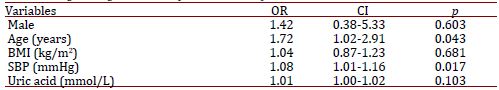 Table 1 shows that the average age of the patients is 10.02 ± 1.38 years. The mean systolic blood pressure and body mass index are 104.83 ± 9.83 mmHg and 19.11 ± 3.58 kg/m2 respectively.