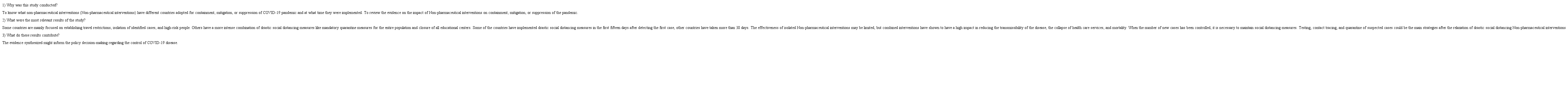 Background: The best scientific evidence is required to design effective Non-pharmaceutical interventions to help policymakers to contain COVID-19.
